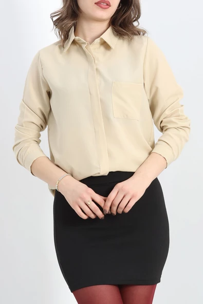 Tek Cepli Gizli Düğme Poplin Gömlek Bej - 25524.1874.