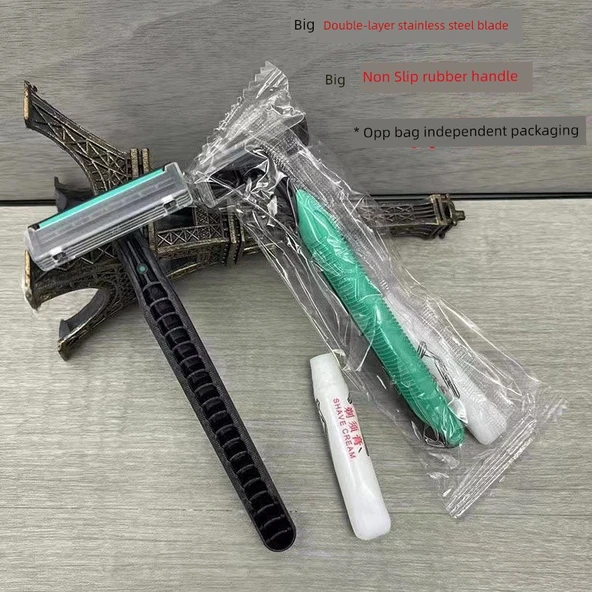 Tek Kullanımlık Çift Kenar Paslanmaz Çelik Tıraş Bıçağı - Yeşil + Krem - 10 Adet