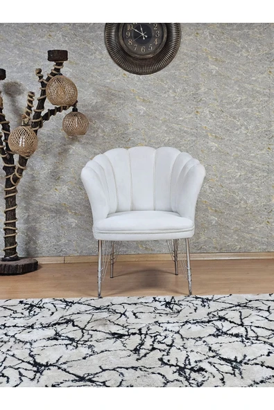 Tekli Krom Tel Ayak Krem Döşeme Papatya Çay Seti Koltuk Takımı , Balkon, Salon, Ofis, Cafe Koltuk Takımı