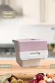 Tekli Tekerlekli Patateslik Soğanlık Oyuncak Kutusu Patates Soğan Sepeti Motek Beyaz-Pembe 12 Lt
