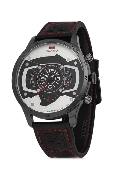 Ticarto T-3027A2 Gerçek Deri Kordon Çelik Kasa Erkek Kol Saati