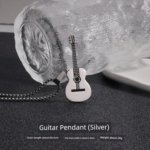 Titanyum Çelik Gitar Kolye - Gümüş Klasik Gitar