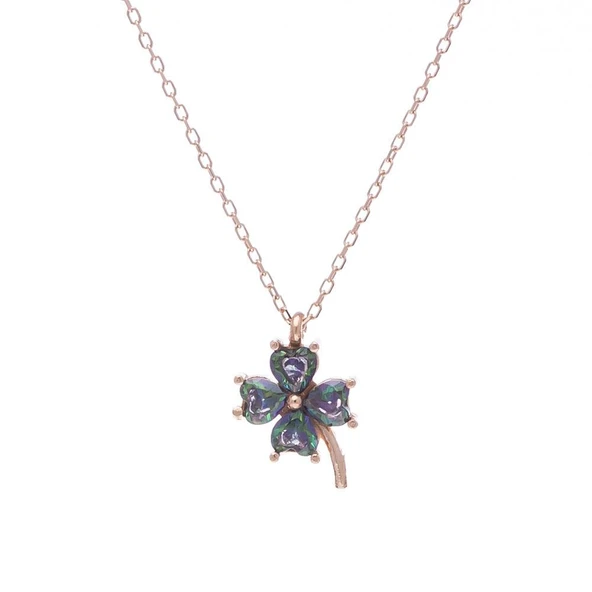 Topaz Taşlı Yonca Model-1 925 Ayar Gümüş Rose Rengi Kadın Kolye