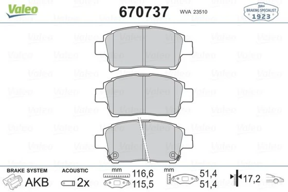 Toyota On Fren Balatası Toyota Yarıs 2002-2006 Corolla Verso Vvt-I 2001-> - Valeo 670737