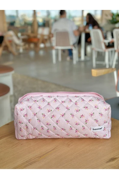 Toz Pembe Gül Desenli Saç Şekillendiricileri İçin Seyahat Çantası - XL Boy