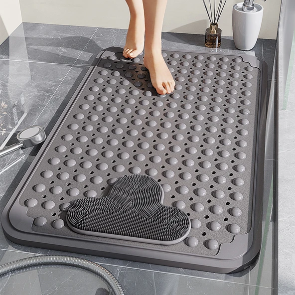 TPE Kaymaz Banyo Paspası - 80x120 - TPE Erişilebilir Lüks Gri