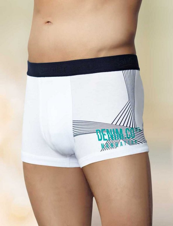 Trair Yelken Baskılı Likralı Boxer Beyaz ME107