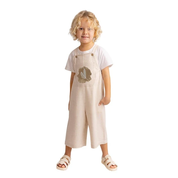 Tüğ Nakışlı Keten Salopet Naturel
