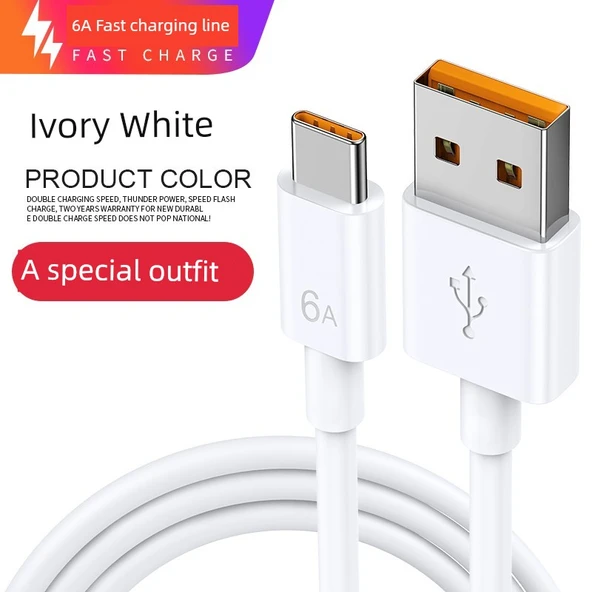 Type-C 6A 100W Süper Hızlı Şarj Data Kablosu - 1m Beyaz