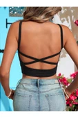 Ana Sayfa Giyim & Aksesuar Kadın Giyim Bluz U Yaka Çapraz Askılı Siyah Renk Omuzu Sırtı Açık Kolsuz Likralı Ribana Crop Top Bluz