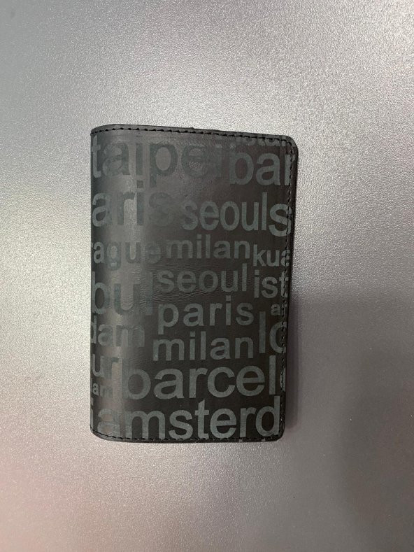 Ülke İsimleri Baskılı Siyah Deri Pasaport Kılıfı