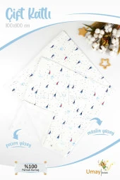 Umaybebek 100x100 Cm, Organik Çift Katlı Müslin Bebek Pikesi, Battaniyesi-Yelken