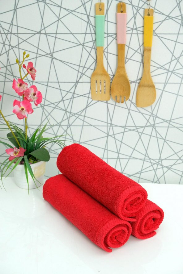 3lü 40x75 Kırmızı Mutfak Havlusu