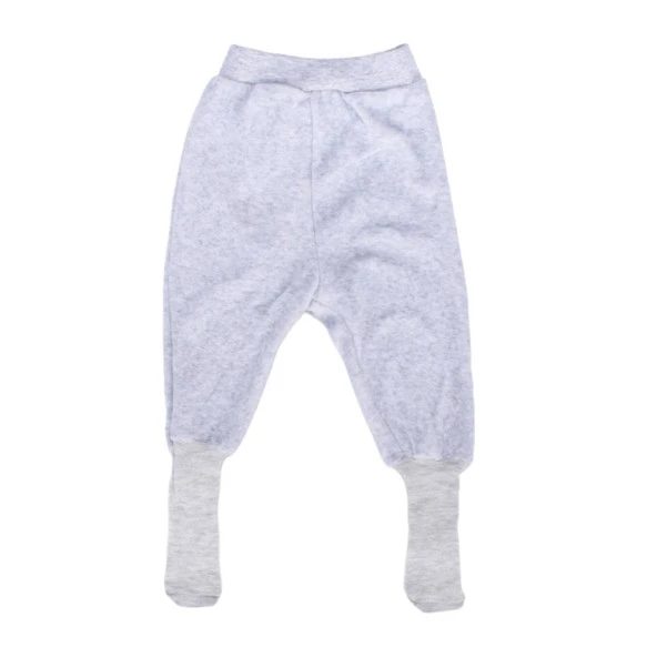 Unisex Bebek Sade Gri Kadife Kendinden Çoraplı Tek Alt