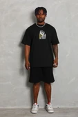 - Unisex Oversize Baskılı Bisiklet Yaka T-Shirt - Siyah