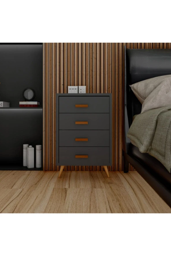 Ünüvar Konsept Emre Dört Çekmeceli Komodin - Anrasit K1