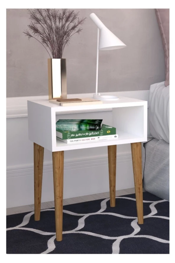 Ünüvar Konsept Komodin Beyaz - Ceviz Ayak K1