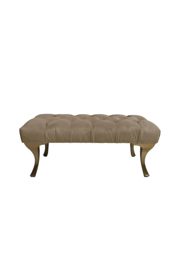ÜNÜVAR KONSEPT Puf Bench Kapitoneli Bej - Gold Renk Ayak