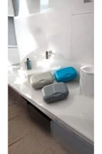 Ana Sayfa Ev Dekorasyon Banyo Banyo Aksesuarları URVE Kilitli Kapaklı Sabunluk Sabun Saklama Kutusu Gri Krem Mavi Renkli 3lü