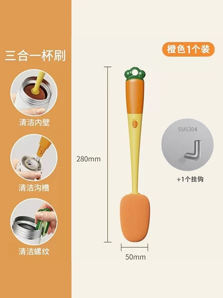 Uzun Saplı Sünger Bardak Temizleme Fırçası - Sarı Fırça + 3m Gümüş Kanca + Pipet Fırçası