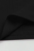 V Yaka Siyah Renk Desensiz Boyun Bağlamalı Fitilli Kısa Kolsuz Likralı Fit Crop Top Bluz