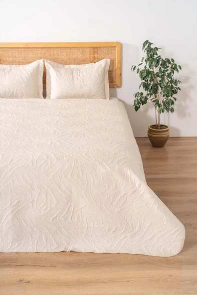 Rivaİstanbul Venada Çift Kişilik Mikro Uyku Seti 3 Parça Yatak Örtüsü Seti Cappuccino