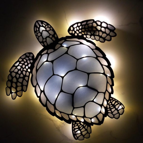 Veraart Epoksili Ahşap Deniz Kaplumbağası Duvar Dekorlu Gece Lambası Siyah 60 cm
