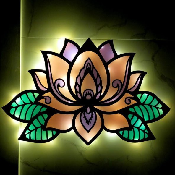 Veraart Epoksili Lotus Çiçeği Figürlü Duvar Dekorlu Gece Lambası 40x62 cm