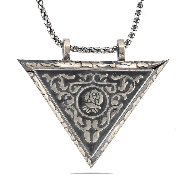 VGD Gumush Gümüş Üçgen İçi Açılabilen Gül Muskalık Kolye