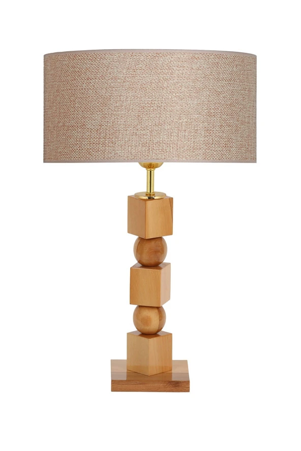 Vinner Geometry Naturel Ahşap Abajur Pre Hasır Kahve