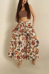 VıoShıne Kadın Beli Lastikli Desenli Bol Paça Samuray Pantolon