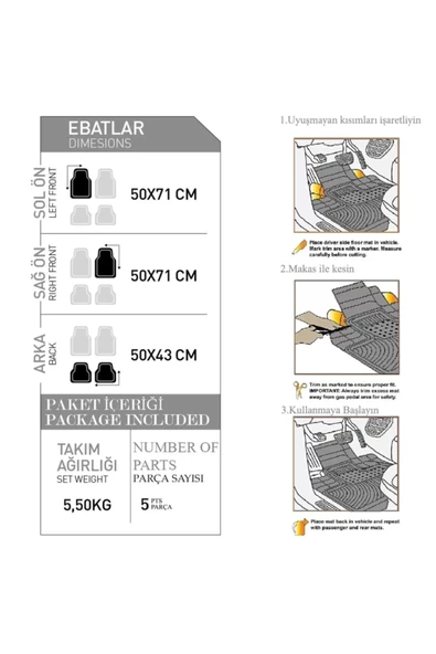 Uluslararası kalite standartlarına uygun, yüksek teknoloji ile gerçek PVC ile yapılmaktadır. Paspaslarımızın alt kısmı kaymaz dişlerle desteklendiği için kaymaz ve güvenli sürüş sağlar. Aracınızın zemin kaplamasında kalıcı lekelere karşı etkin koruma...Üründe taksit avantajı var.