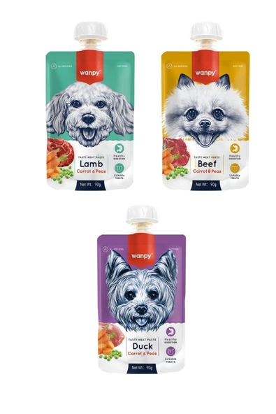 Wanpy 3 Çeşit Karma Taze Köpek Et Ezmesi 90 Gr. X 3 Adet