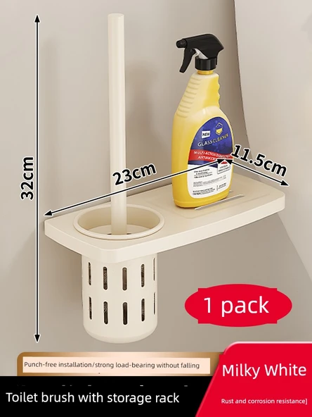 WC Fırçası Seti - Süt Beyazı, Saklama Hazneli (Yapıştırmalı)