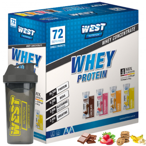 West Nutrition Whey Protein Tozu 2592 gr 72 Şase BİR KUTUDA 4 AROMA 3 HEDİYE