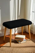 WoodyMaison Alora Dikdörtgen Puf Bench – Peluş Teddy Kumaş, Ahşap Ayaklı, Geniş Oturum Alanlı