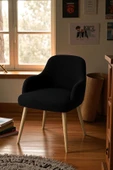 Ana Sayfa Ev Dekorasyon Mobilya Oturma Odası Kanepe-Koltuklar Tekli Koltuk-Berjer WoodyMaison Velora Peluş Kumaş Sırtlı Puf Sandalye – Ahşap Ayaklı, Makyaj Masası & Salon İçin