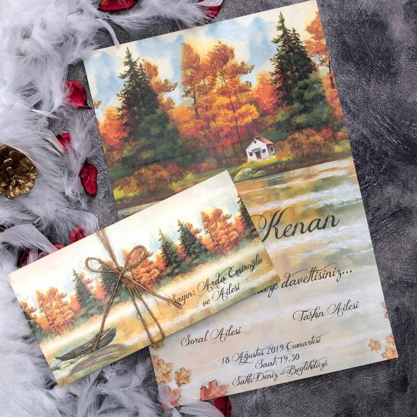 Yağlıboya Manzara Temalı Davetiye ELT63657 - 100 Adet