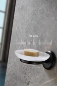 Ana Sayfa Ev Dekorasyon Banyo Banyo Aksesuarları Tuvalet Kağıtlığı Yapışkanlı Hazneli Katı Sabunluk Siyah S-105 KASA - 9