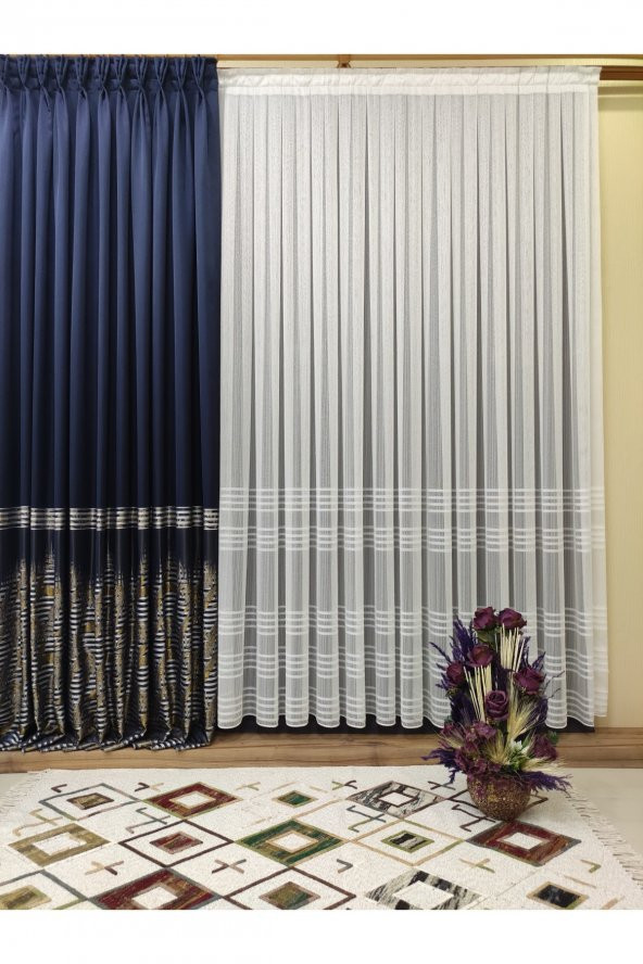 Yatay Çizgi Desenli Simli 1-2,5 Orta Pile Tül Perde
