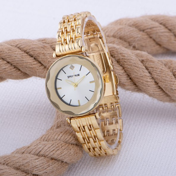 Yeni Sezon Gold Renk Çelik Kordonlu Taş Detaylı Bayan Kol Saati ST-303552