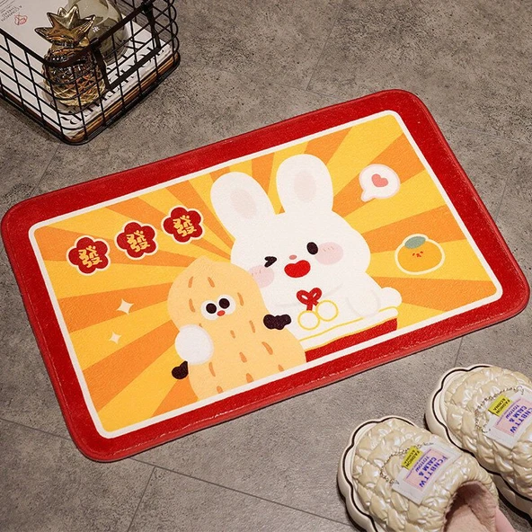 Yeni Yıl Temalı Paspas - Hao Shi Fasheng Desenli 40x60cm