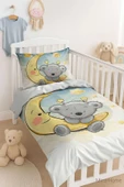 - Yenidoğan Kız / Erkek Unisex Bebek Nevresim Takımı %100 Pamuklu Aydaki Ayıcık