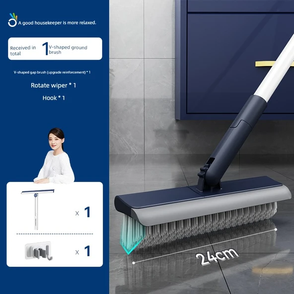 Yer ve Tuvalet Temizleme Fırçası - V Şekilli Aralık Fırçası + Silecek + Paspas Aparatı