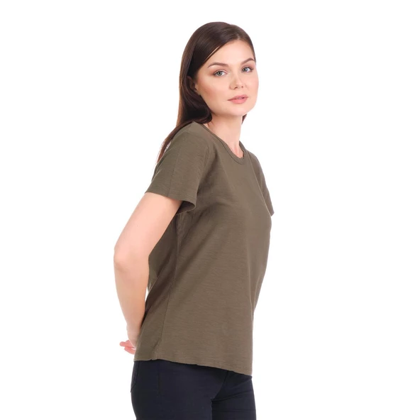 Ana Sayfa Giyim & Aksesuar Kadın Giyim T-Shirt Bisiklet Yaka Yeşil Bisiklet Yaka Organik Pamuklu Tişört