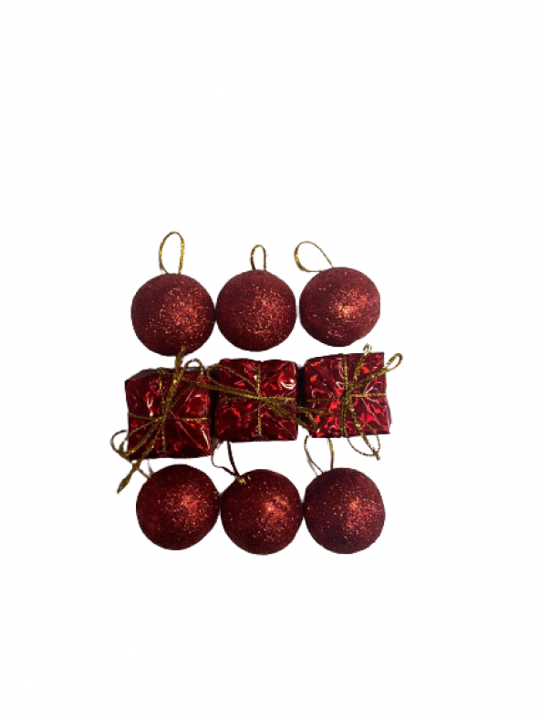 YILBAŞI AĞAÇ SÜSÜ KIRMIZI TOP VE HEDİYE PAKETİ 9LU 3 CM