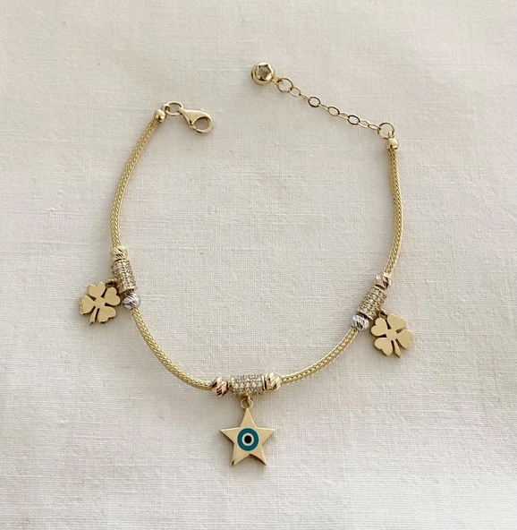 Yıldız Ve Yoncalı Pandora Altın Bileklik