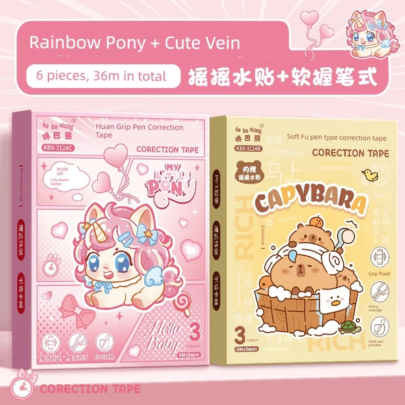 Yumuşak Tutma Su Etiketi Düzeltme Bandı - Gökkuşağı Pony + Sevimli Yunus 6 Paket/36 m