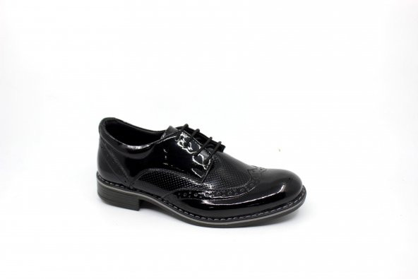 - Zerhan 165 Erkek Çocuk Siyah Rugan Lastik Bağcıklı Ayakkabı