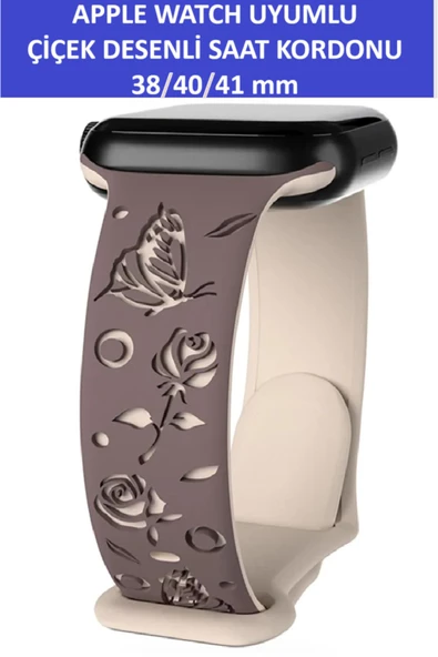 ZETCONCEPT Apple Watch 4 5 6 7 8 9 10 Se 38 40 41mm Kelebek Gül Desenli Kordon Kayış Kaliteli Silikon Bileklik